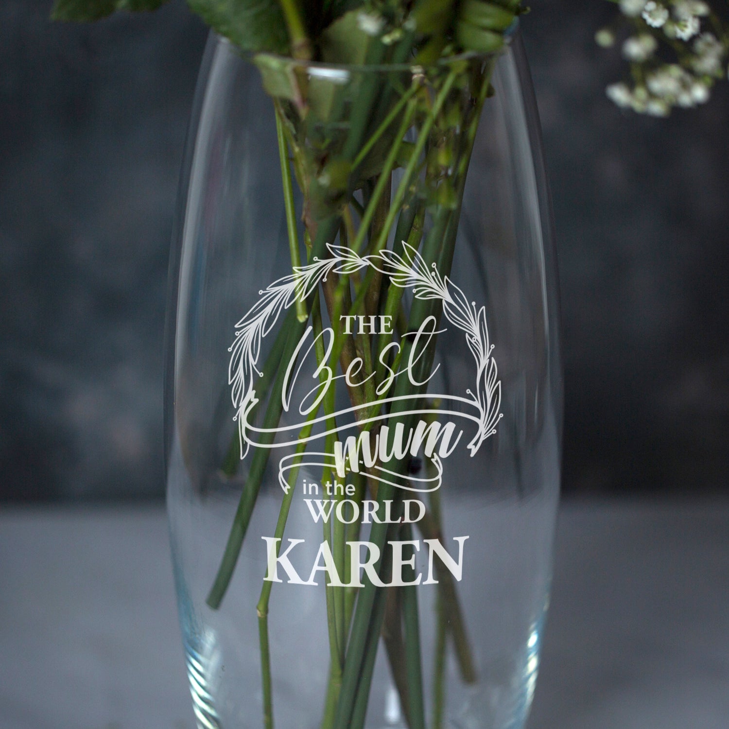 Personalised Best Mum In The World Glass Bullet Vase | Custom Name Gift