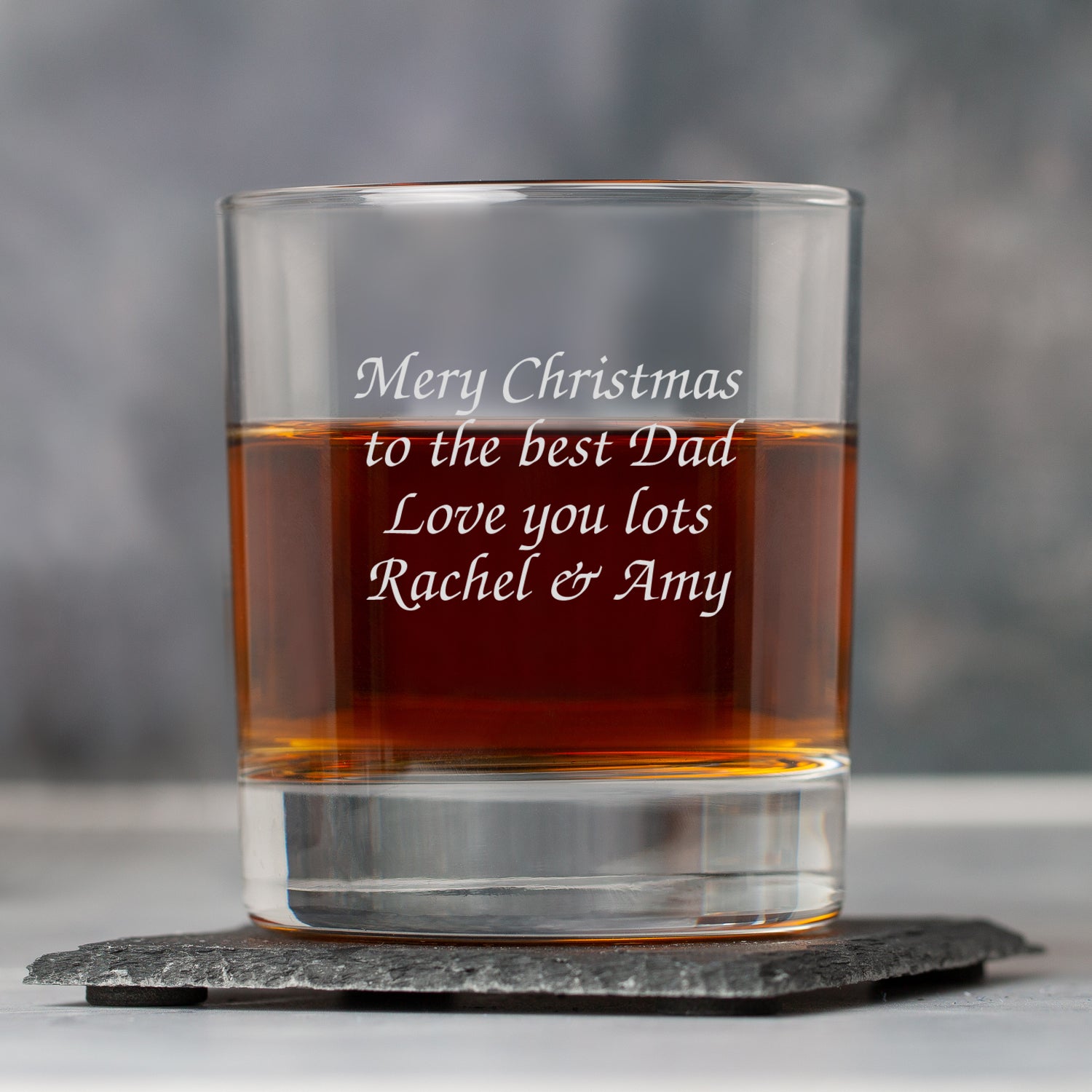 Treat someone special to our Personalised Message Glass Tumbler – Custom Engraved Gift. Perfect for the man who loves a whisky or brandy, this classic glass tumbler can be personalised with any 4 lines of text (up to 20 characters per line), making it a truly unique and thoughtful present for birthdays, Father’s Day, Christmas, or any special occasion.
