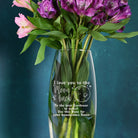 Show just how much you care with our Personalised To The Moon and Back Glass Bullet Vase. Featuring the fixed phrase “I love you to the moon and back,” this elegant vase can be personalised with up to four lines of your own message—making it a truly special gift for Mother’s Day, birthdays, Valentine’s, anniversaries, or any occasion. Flowers will look beautiful in this keepsake vase, and it will be treasured for years to come.