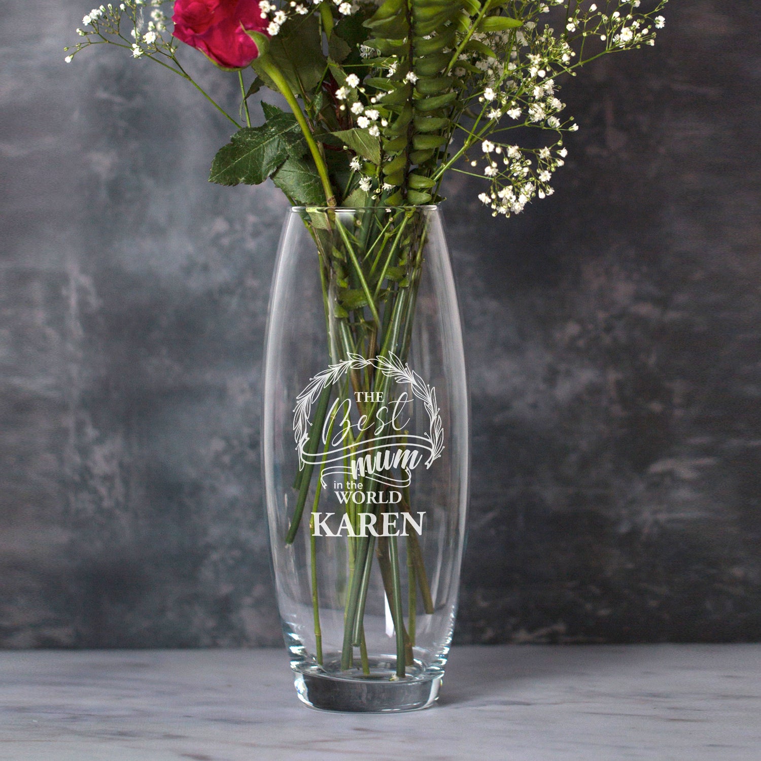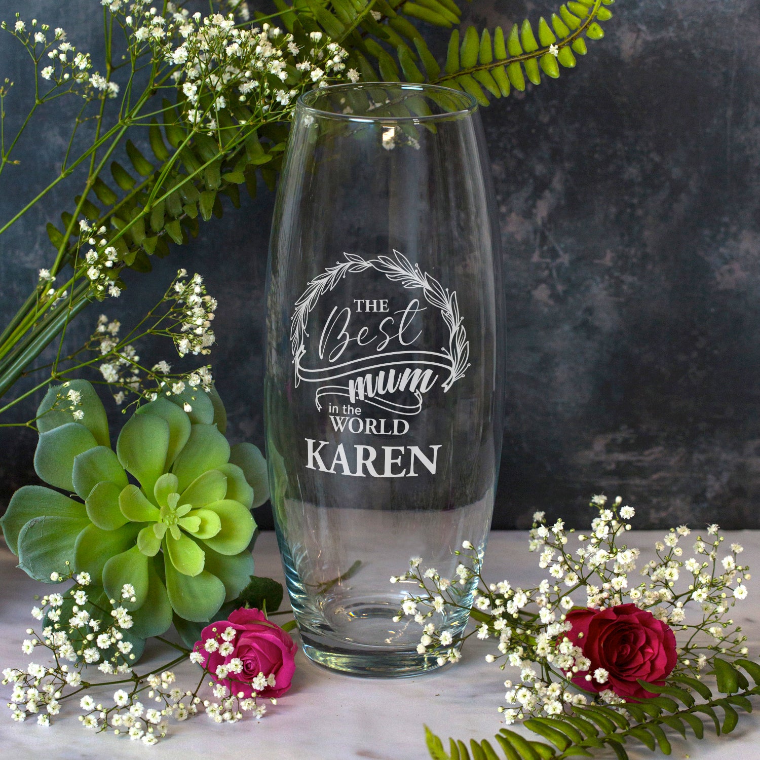 Add a special touch to any occasion with our collection of personalised glass flower vases—perfect for birthdays, weddings, anniversaries, Mother’s Day, housewarmings, or as a unique gift for flower lovers. Each vase is expertly engraved in Manchester with your custom name, message, or design. Choose from a range of elegant glass flower vases, all made-to-order and dispatched quickly across the UK. Free delivery on orders over £40.