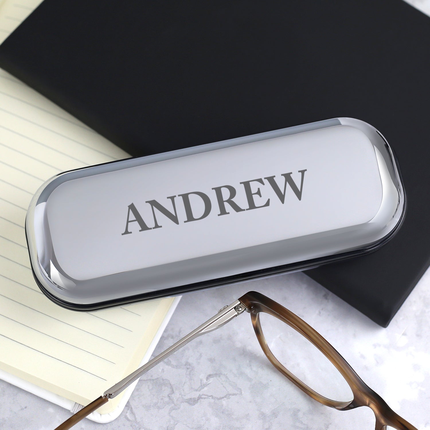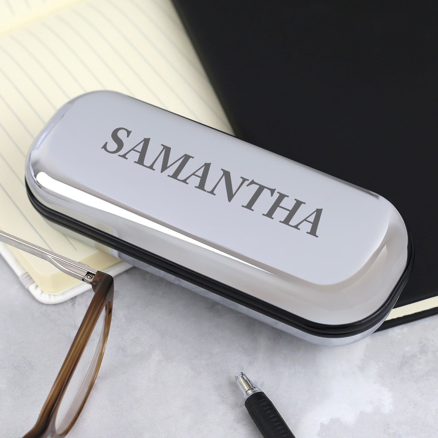 The personalisation on this chrome plated glasses case will appear as it is entered.