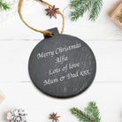 Create a truly personal keepsake with this engraved slate bauble, customised with your message over four lines. Perfect for Christmas trees, stockings, or as a unique tag for gifts to loved ones.