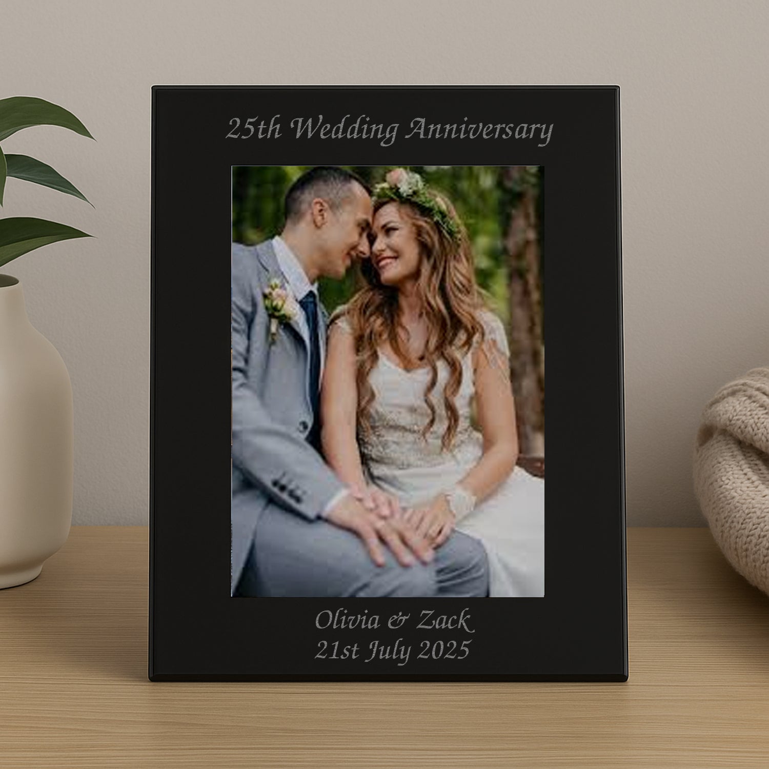 Personalised Black Glass Photo Frame – 25th Wedding Anniversary