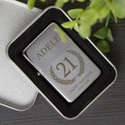 This polished silver lighter features a classic birthday crest design and is personalised with any name, age, and two lines of custom text below (e.g. “Happy Birthday”, “10.10.2026”). A unique keepsake for milestone birthdays, supplied in a premium metal tin gift box. Please note: Lighters are not supplied with fuel for safety reasons and must be filled before use.