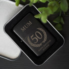 This matt black lighter features a classic birthday crest design and is personalised with any name, age, and two lines of custom text below (e.g. “Happy Birthday”, “10.10.2026”). A unique keepsake for milestone birthdays, supplied in a premium metal tin gift box. Please note: Lighters are not supplied with fuel for safety reasons and must be filled before use.