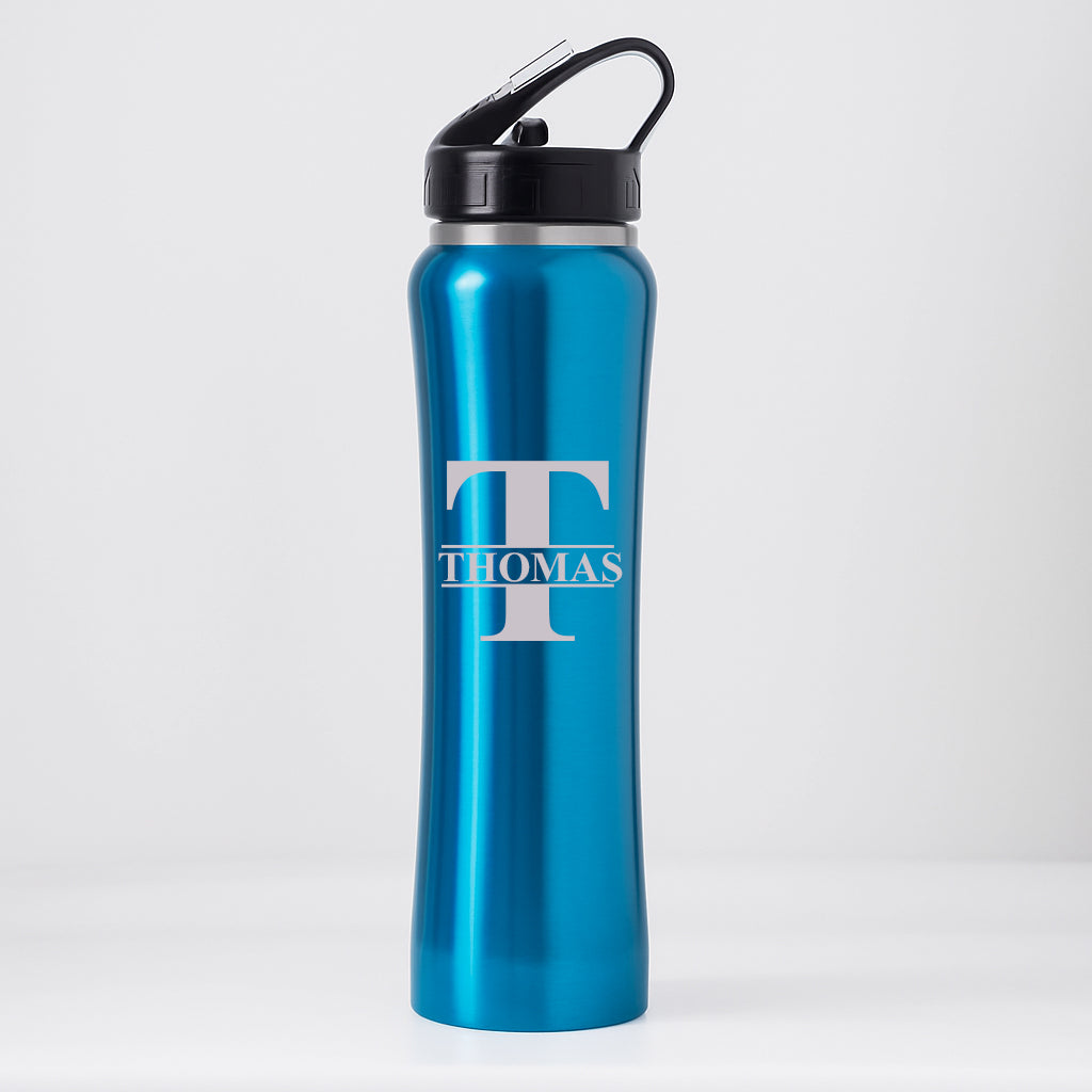 Personalised Initial & Name Sports Style Thermos Water Bottle