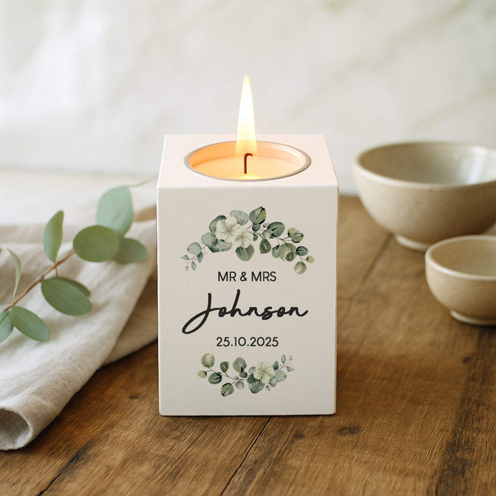 Explore our collection of sturdy white wooden tea light holders, beautifully UV printed for a lasting finish. Each holder is designed to fit a standard tealight candle (4cm diameter) and measures 7cm x 7cm x 10cm – the perfect size for any room or occasion. Personalise your tea light holder with custom designs for weddings, memorials, or thoughtful home décor gifts.