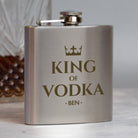 Our Personalised 6oz Silver King Of Hip Flask is the perfect gift idea for his royal highness to sip on this throne, can be personalised with any drink and name, making it extra special for his vodka, whiskey, gin, and many more!