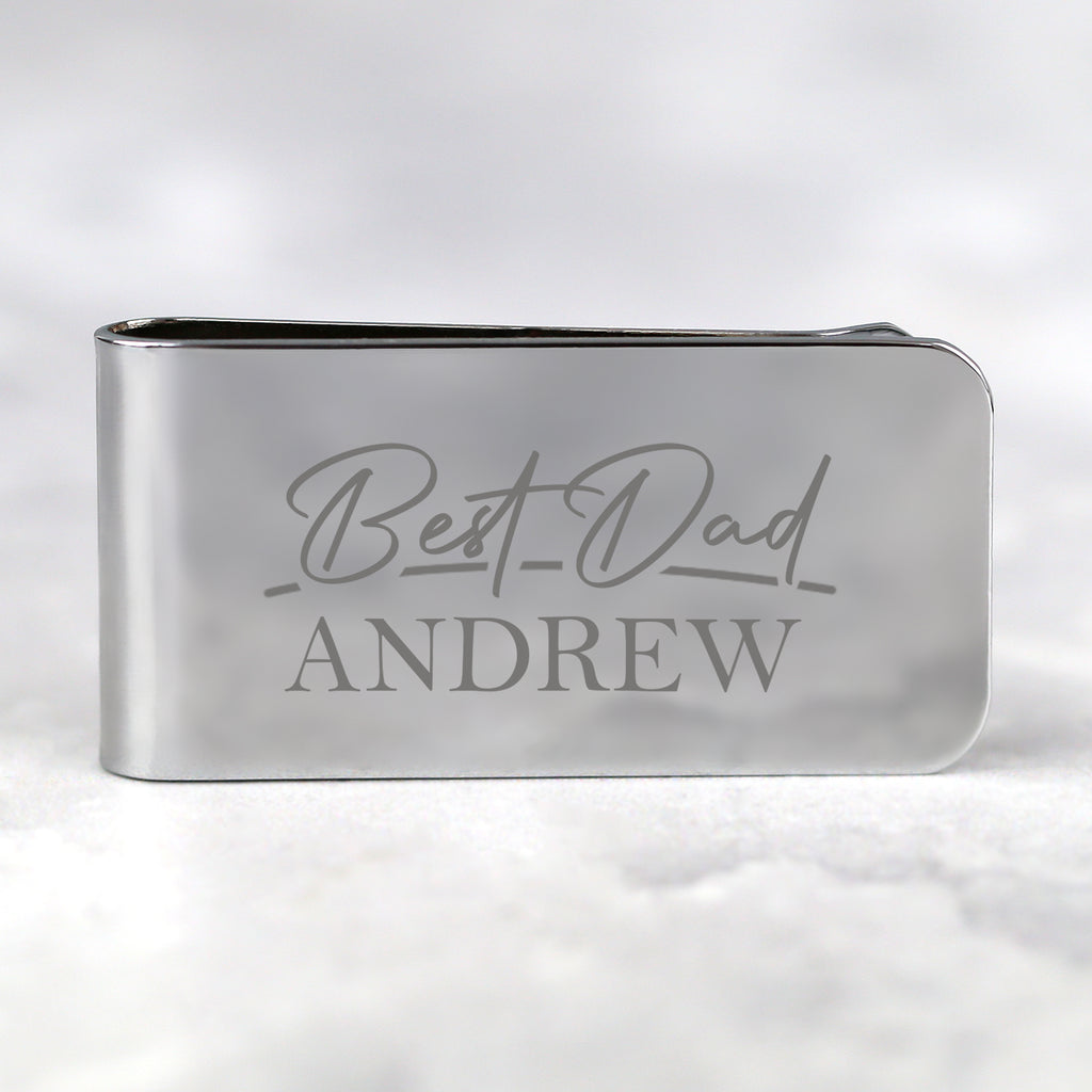This Personalised Best Dad Money Clip can be engraved with any name below the "Best Dad" text, to make a great and unique gift. This is a popular father's day present and will make a very memorable gift.