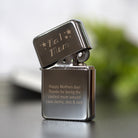 Our zippo style brushed chrome classic lighters are laser engraved with any message on the base that you require and come supplied with a free metal tin gift box, which can also be engraved with any wording of your choosing.
