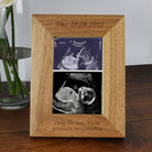 - Warm oak-style wooden photo frame, fully customisable