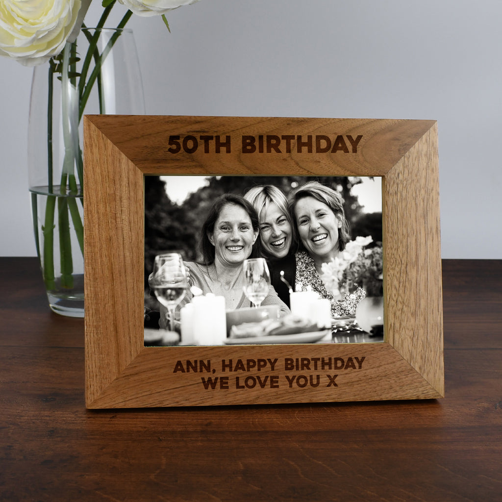 Personalised Wooden 7x5 Landscape 50th Birthday Frame